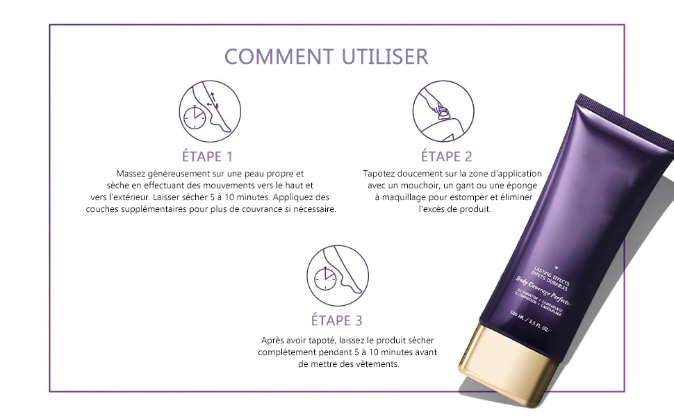 2️⃣ Pour le corps : Appliquez généreusement sur une peau sèche, faites pénétrer, puis laissez poser 10 minutes pour garantir une résistance au transfert. ⏳