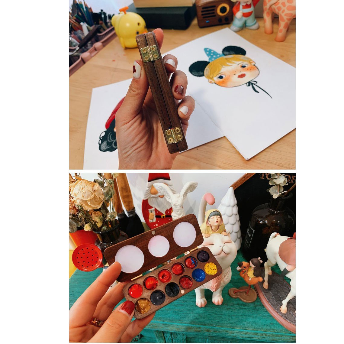 1* Palette d'aquarelle portable en noyer.